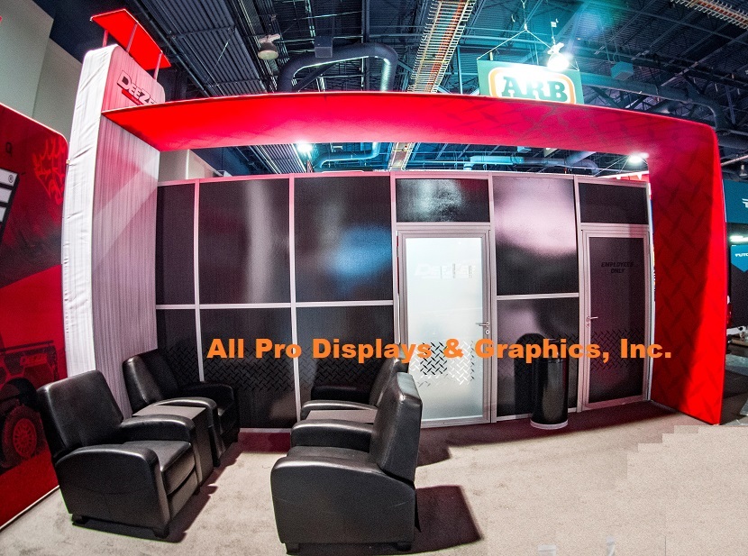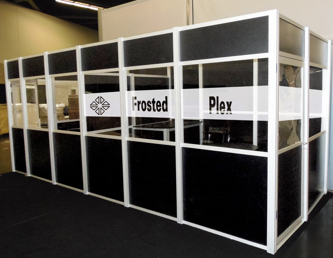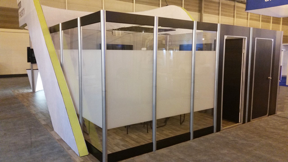 CONDUCT business in your booth!    The panache of your boardroom in your booth via a beautiful portable conference room or semi-private meeting room or storage room.