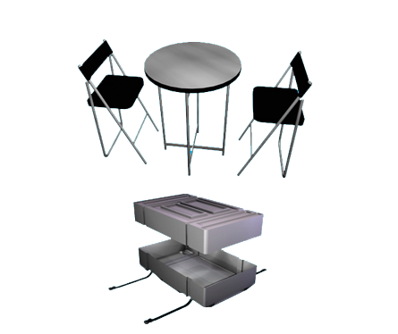 2 CURVED BACK CHAIRS WITH 36″ TABLE