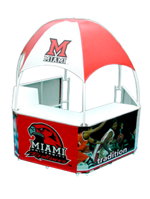 Our smallest and most affordable Gazebo. At eight and one-half feet wide, it is ideal for a staff of 2 or 3 people and can still fit into the ten-by-ten foot standard show area.