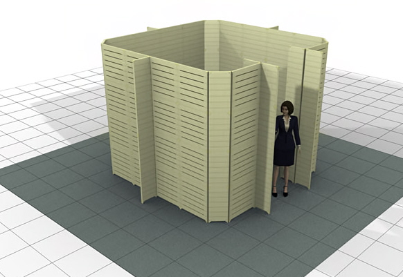 We also offer a unique line of portable conference / meeting / storage options that are created via easy to assemble 2’ x 2’ panels. One side of each panel has Slatwall, the other side is a rough surface. Extremely cost effective.