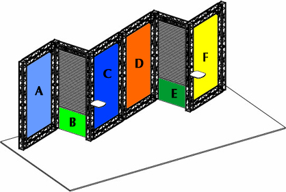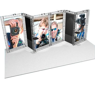 A stairstep 10 x 20 display, that creates 4 distinct presentation areas using all flat sections.
